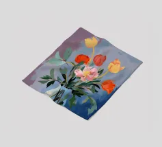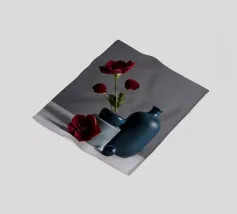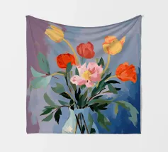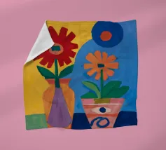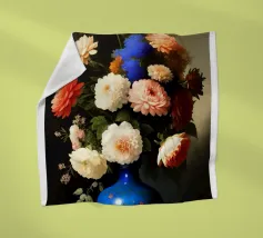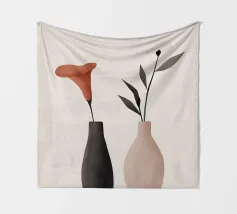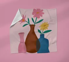 Elegante poster di natura morta con vasi in ceramica dai toni pastello riempiti di fiori sbocciati rosa e arancioni, su un morbido sfondo blu. Perfetto per aggiungere un tocco artistico e sereno agli interni moderni. Ideale per gli amanti dell'arte e dell'arredamento in cerca di ispirazione floreale.