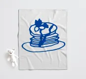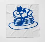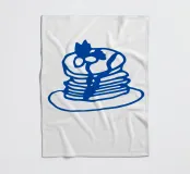 Una pila di pancake conditi con sciroppo e una guarnizione è rappresentata in uno stile minimalista di line art blu. Il design enfatizza la semplicità e le immagini a tema colazione.