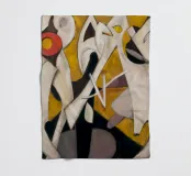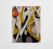 Dynamic abstract forms in white and yellow clash and embrace in a jagged, rhythmic choreography.