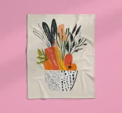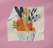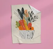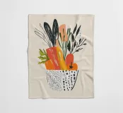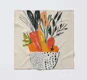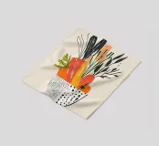Una composizione moderna e vibrante che celebra la bellezza delle verdure. Forme astratte e colori vivaci conferiscono a questa illustrazione un'atmosfera calda e contemporanea. Perfetta per una cucina dinamica o per un interno vivace.