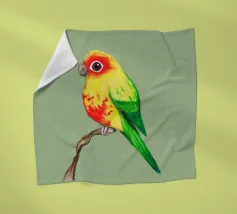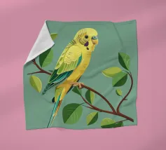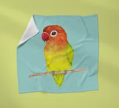 Illustrazione digitale di un simpatico inseparabile dalla faccia di pesca appollaiato su un bastone.