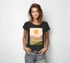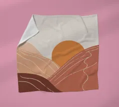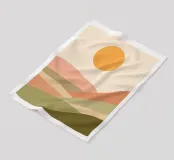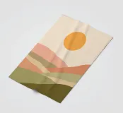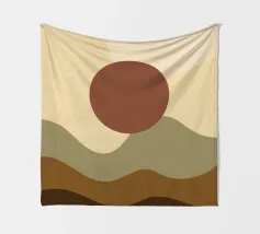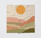 Quest'opera d'arte cattura la serena bellezza di colline ondulate immerse in toni caldi e terrosi, con un sole tenue che risplende sopra la testa. Lo stile minimalista e la palette di colori tenui creano un'atmosfera calma e accogliente, perfetta per portare un tocco di magia dell'ora d'oro in qualsiasi spazio.