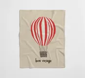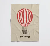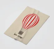 Il motivo mostra la scritta "Bon Voyage" sotto una mongolfiera a strisce bianche e rosse. Il design minimalista su sfondo beige ricorda i poster di viaggio francesi e irradia leggerezza e senso di avventura. Un murale moderno e affascinante per tutti coloro che amano i viaggi e l'avventura.