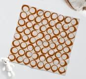 Questo motivo ad anelli retrò arancione bruciato trasmette un'energia calda e nostalgica, ispirata all'arredamento eclettico degli anni '60 e '70. Le sue curve geometriche fluide creano una dichiarazione audace ma accogliente, perfetta per stampe d'arte, tessuti e interni moderni e retrò.