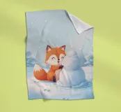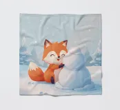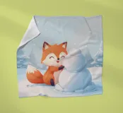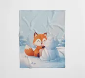 Con un sorriso giocoso, Voxy modella una piccola scultura di neve in una foresta innevata. Il blu tenue, la delicata nevicata e la simpatica energia invernale ne fanno un'illustrazione perfetta per i bambini e gli amanti delle vacanze.
