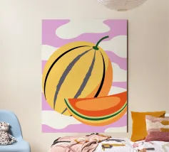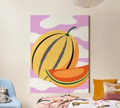 Trovate ispirazione per uno stile di vita sano con questa illustrazione. Angurie fresche e gialle sono disposte in modo splendido, mostrando la loro freschezza e il loro valore nutrizionale.