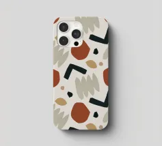 Un sofisticato motivo astratto che combina motivi di foglie botaniche con forme geometriche art déco nei caldi toni della terra: arancio ruggine, terra di Siena bruciata, grigio e crema. Questo disegno artistico fonde elementi floreali organici con forme geometriche moderne per un'estetica raffinata e vintage-moderna. Perfetto per gli amanti dell'art déco, per gli appassionati di arte astratta, per i fan delle tonalità della terra e per chiunque apprezzi l'elegante fusione di design botanico e geometrico con colori caldi e naturali.
