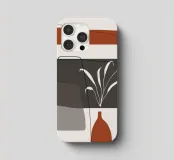 Linee astratte e blocchi di colori tenui creano una composizione moderna dall'estetica minimalista. La forma stilizzata di una pianta e quella semplice di un vaso aggiungono elementi organici, in contrasto con le forme geometriche.