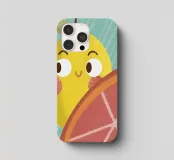 L'allegra illustrazione presenta un personaggio sorridente di un limone giallo accanto a una fetta d'arancia.