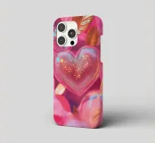 Stampa d'arte Cuore rosa con accenti oro e glitter - Quest'opera d'arte di grande impatto visivo presenta un cuore rosa scintillante su una superficie simile al vetro, circondato da foglie d'oro e bolle traslucide. I colori vivaci del rosa e dell'oro, combinati con una luce soffusa, creano un'atmosfera romantica e sognante. I dettagli intricati e le texture riflettenti dell'opera d'arte la rendono un regalo perfetto per gli amanti dell'arredamento moderno e stravagante e dell'arte romantica.