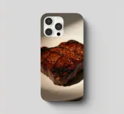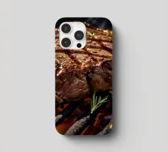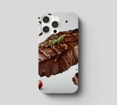 Una bella bistecca alla griglia è adagiata su un piatto bianco, ornato dai segni della griglia. La calda luce del sole mette in risalto i suoi colori ricchi, creando un'atmosfera invitante perfetta per il pranzo.