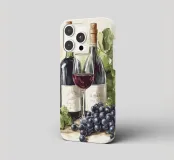 Due bottiglie di vino, un bicchiere di vino rosso e uva fresca su uno sfondo di foglie di vite verdi: questa classica natura morta è un omaggio al piacere, all'artigianato e alla natura. I colori tenui e la rappresentazione realistica rendono il motivo particolarmente adatto a cucine, sale da pranzo o cantine. Ideale per gli amanti del vino, i sommelier o come regalo per gli intenditori.