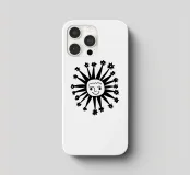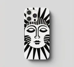 Questo disegno nero e astratto della luna celeste, circondato da stelle scintillanti, conferisce un tocco artistico e tagliente e combina il misticismo del cielo notturno con uno stile contemporaneo e all'avanguardia, rendendolo un pezzo di spicco per qualsiasi spazio e oggetto.