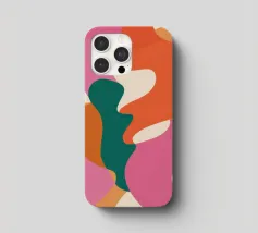 Un'opera d'arte astratta dinamica che presenta una collisione di forme organiche e audaci in colori vivaci come l'arancione, il rosa e l'azzurro intenso. La composizione è energica e moderna e rappresenta una forte dichiarazione visiva.