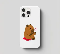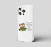 Due simpatici capibara siedono pacificamente su un coccodrillo verde, con accanto la frase scherzosa "Don't Worry Be Capy".