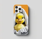 Un simpatico anatroccolo fa capolino da sotto un morbido asciugamano bianco. Le sue soffici piume gialle e i suoi occhi curiosi creano una scena adorabile e affascinante.