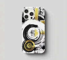 Audaci curve nere si intrecciano con un vibrante quadrato dorato al centro, creando una composizione dinamica e astratta. Il gioco di contrasti tra luce e buio aggiunge profondità e movimento al disegno.