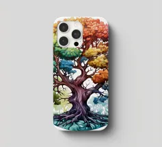 In superficie, un gruppo di alberi stilizzati esplode di colori, con le loro chiome che formano sfere di blu, arancione e giallo vibranti, alcune delle quali sono giocosamente divise in due metà contrastanti. Questo gioioso spettacolo di colori è rispecchiato da un'intricata rete di radici rosso intenso sotto la superficie, che simboleggia la forza nascosta e la connessione fondamentale che sostiene la vita. Le sfere colorate sparse aggiungono un'atmosfera stravagante ed energica, evocando un senso di meraviglia e di crescita. Perfetto per aggiungere un tocco di creatività e armonia naturale a qualsiasi spazio, questo pezzo celebra sia l'individualità che l'unità.