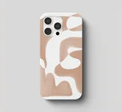 Fluido disegno astratto caratterizzato da diverse forme irregolari e curve di colore marrone, collegate tra loro da spazi bianchi, che creano un senso di movimento e continuità organica su uno sfondo neutro.