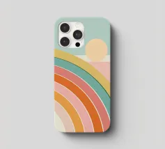 Questa delicata illustrazione mostra un arcobaleno in colori pastello con morbide sfumature di colore dall'azzurro al rosa, al giallo pastello e al verde chiaro. Le linee geometriche e le strisce strutturate danno un tocco moderno all'opera grafica e riflettono la natura. Un gioco armonioso di colori che irradia calma e gioia.