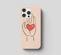 Un primo piano di una mano che stringe delicatamente il cordoncino di un grande palloncino color terracotta opaco, a forma di cuore. La composizione semplice e i toni morbidi e caldi creano un'immagine intima e un po' tenera, che si concentra sul legame tra la mano e il palloncino simbolico.