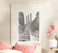 Le nuvole che si stendono sulla città di Barcellona sono dinamiche. Guardando dal tetto del mio appartamento, posso vedere il mare scintillante oltre la città sulla destra. Davanti a me si apre un mondo diverso che non si può vedere dalla strada. Questo è un disegno che ho fatto dal vivo.