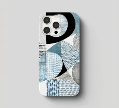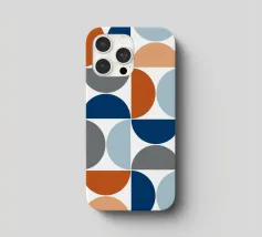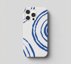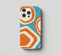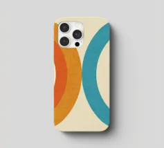 Audaci cerchi sovrapposti in blu e arancione creano un motivo dinamico su uno sfondo chiaro. I bordi ruvidi e strutturati conferiscono un senso di movimento ed energia.
