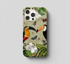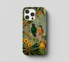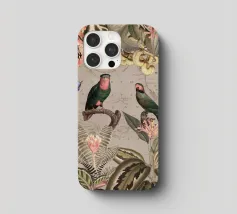 Un vivace collage di illustrazioni vintage con bellissimi e colorati pappagalli verdi appollaiati in mezzo a un lussureggiante paesaggio floreale. La scena è ricca di fascino tropicale ed esotico, poiché i pappagalli si stagliano sullo sfondo del fogliame vibrante della giungla. Intorno a loro sbocciano incredibili fiori esotici, mentre i rami di palma aggiungono un tocco di eleganza tropicale. Sullo sfondo, una mappa d'epoca emerge dolcemente, aggiungendo un senso di avventura e di viaggio. Questa miscela armoniosa di natura, fauna selvatica e fascino vintage crea un disegno senza tempo, perfetto per gli amanti dei paesaggi esotici e dell'arte nostalgica.