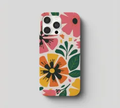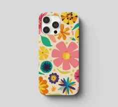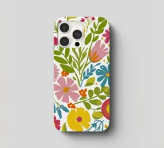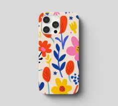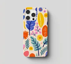Una bella macchia di fiori selvatici stilizzati e stravaganti è illustrata in un affascinante stile ispirato all'arte popolare, con un delizioso mix di colori e forme che irradiano gioia e bellezza naturale.