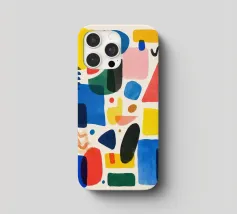 Una composizione astratta moderna e giocosa, caratterizzata da una disposizione a griglia di forme organiche e colorate. L'opera si presenta come un puzzle sofisticato ed equilibrato di forme e colori.