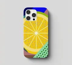 Limone minimalista su audaci onde rosse e rosa. Linee chiare, colori decisi: un design di tendenza pieno di freschezza.