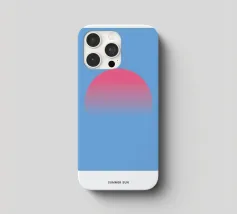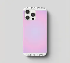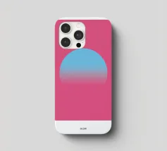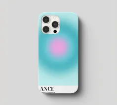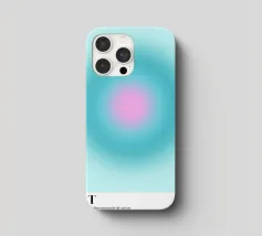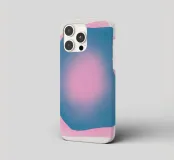 Un morbido gradiente fonde il blu e il rosa vibranti, formando forme organiche astratte e sovrapposte. Le transizioni morbide e il bagliore etereo creano una visione rilassante.