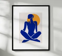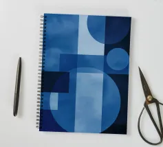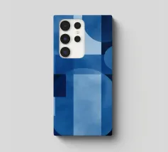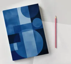 Illustrazione geometrica astratta nei toni del blu, che combina cerchi e quadrati trasparenti per creare una composizione armoniosa e moderna. Le variazioni di tonalità e texture aggiungono una profondità visiva accattivante, ideale per evocare un'atmosfera contemporanea e sofisticata. Questo disegno astratto è perfetto per valorizzare uno spazio o un progetto con un tocco artistico ed elegante.
