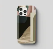 Uno spazio architettonico astratto è definito da una scalinata spoglia e da archi sovrapposti, con un drammatico gioco di luci e ombre che crea una composizione potente e minimalista.