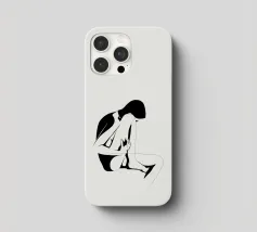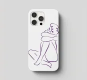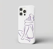 Un semplice disegno al tratto raffigura una persona seduta con i capelli ricci, le braccia avvolte intorno alle ginocchia. Lo stile minimalista utilizza linee morbide e fluide per trasmettere un senso di calma e introspezione.