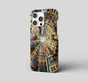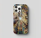 Una composizione architettonica colorata e surreale che mostra edifici curvi e a spirale che formano una prospettiva a tunnel verso il cielo. Il vibrante design urbano mette in evidenza finestre intricate, texture ed elementi artistici, fondendo realismo e fantasia.
