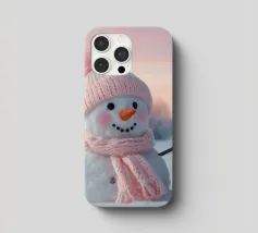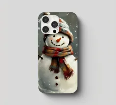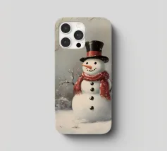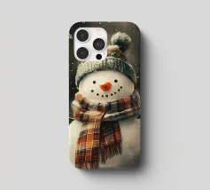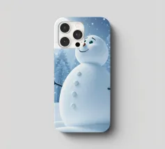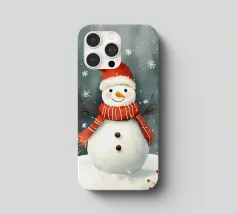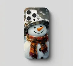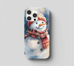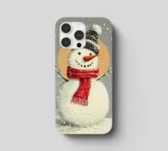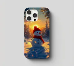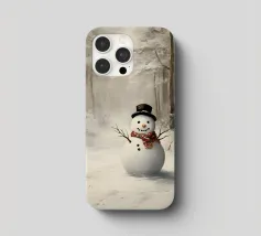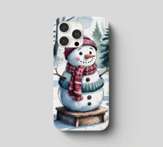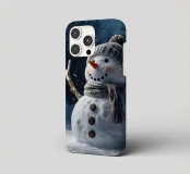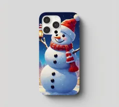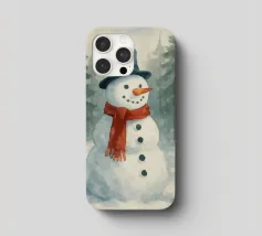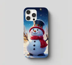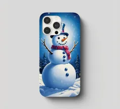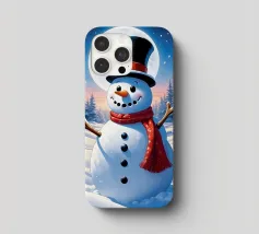 Un pupazzo di neve adornato con un cappello e una sciarpa si gode la serena bellezza di una foresta innevata al chiaro di luna, circondato da fiocchi di neve che cadono.