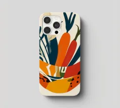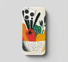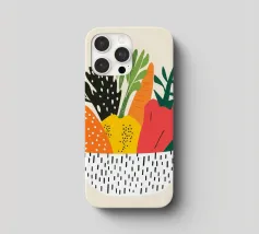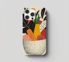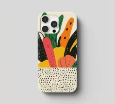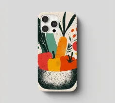 Una composizione moderna e vibrante che celebra la bellezza delle verdure. Forme astratte e colori vivaci conferiscono a questa illustrazione un'atmosfera calda e contemporanea. Perfetta per una cucina dinamica o per un interno vivace.