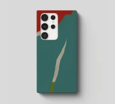 Illustrazione astratta di due figure stilizzate che indossano abiti rossi e verdi dai motivi vivaci, con forme semplificate ed eleganti.