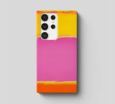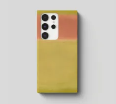 Un'opera d'arte astratta minimalista in campo cromatico ispirata a transizioni morbide e bordi grezzi del pennello.