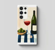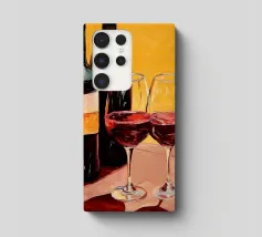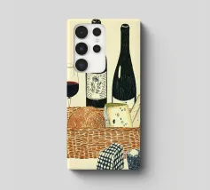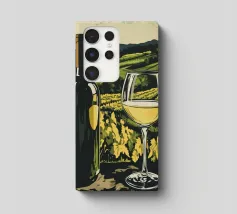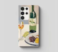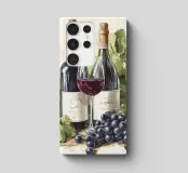 Due bottiglie di vino, un bicchiere di vino rosso e uva fresca su uno sfondo di foglie di vite verdi: questa classica natura morta è un omaggio al piacere, all'artigianato e alla natura. I colori tenui e la rappresentazione realistica rendono il motivo particolarmente adatto a cucine, sale da pranzo o cantine. Ideale per gli amanti del vino, i sommelier o come regalo per gli intenditori.