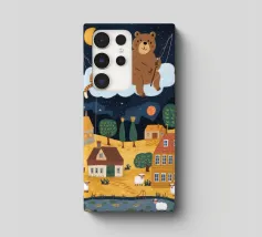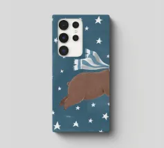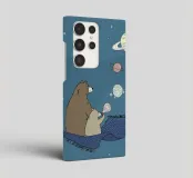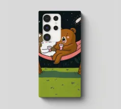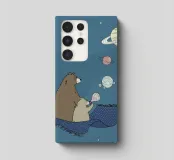 A playful illustration of two bears blowing bubbles in space that adds fun and wonder to any decor or clothing. Perfect for dreamers of all ages.