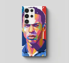 Coco in stile WPAP è un ritratto geometrico audace e colorato del famoso calciatore francese. Utilizzando tinte vivaci e forme spigolose, l'opera d'arte WPAP (Wedha's Pop Art Portrait) cattura la calma determinazione e il look iconico di Coco, riflettendo la sua eleganza, forza e abilità sul campo da calcio.