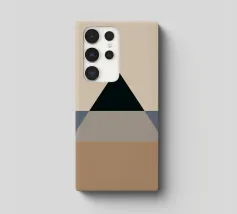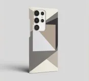 Forme geometriche in toni neutri creano una composizione astratta con triangoli sovrapposti e un quadrato centrale. Il gioco di luci e ombre aggiunge profondità al design minimalista.
