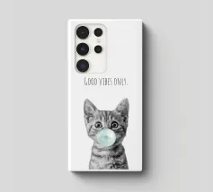 Questo gatto ha semplicemente tutto: fresco, elegante e con un tocco di coolness! Con la sua bolla di sapone rosa e il suo sguardo innocente, diffonde puro buonumore ed è il motivo perfetto per chiunque ami l'energia positiva e l'umorismo. Il design moderno e minimalista combina una sottile illustrazione in bianco e nero con un fresco accento rosa; semplice ma espressivo. Un must per i fan dei gatti, per gli amanti del design e per chiunque voglia farsi notare: casual, moderno e con un pizzico di umorismo.