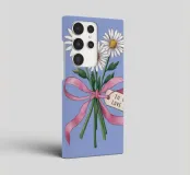 A sweet and romantic illustration of a bouquet of white daisies tied with a pink ribbon. A small tag that reads 'to my love' is attached, making this a perfect depiction of a heartfelt, romantic gesture.