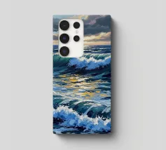 Questo dipinto a olio cattura la potenza e la bellezza delle onde d'altura. Onde imponenti si alzano e si impennano, rese con audaci pennellate di blu profondo, verde mare e bianco spumeggiante, creando contrasti sorprendenti. La luce del sole si riflette sulla superficie dell'oceano, scintillante e mutevole. Il dipinto evoca un senso di libertà, la maestosità della natura e la sconfinata energia del mare.