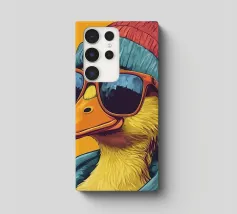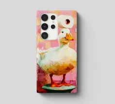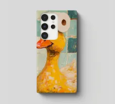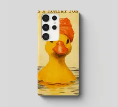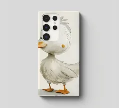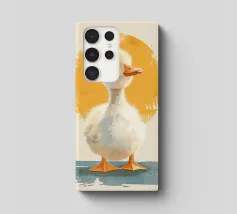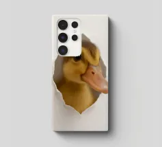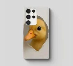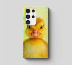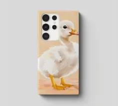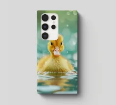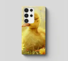 Un simpatico anatroccolo fa capolino da sotto un morbido asciugamano bianco. Le sue soffici piume gialle e i suoi occhi curiosi creano una scena adorabile e affascinante.