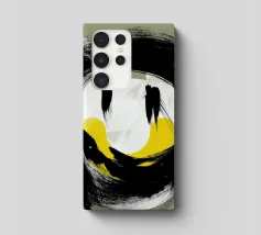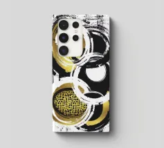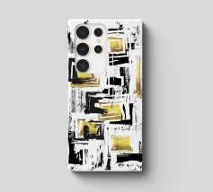 Audaci curve nere si intrecciano con un vibrante quadrato dorato al centro, creando una composizione dinamica e astratta. Il gioco di contrasti tra luce e buio aggiunge profondità e movimento al disegno.