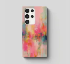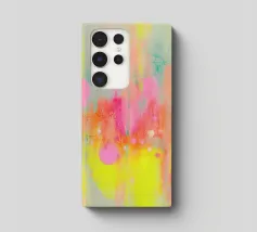 This abstract artwork depicts flowing areas of colour in pastel pink, yellow, blue, green and pink. The soft brushstrokes and harmonious pop art colour composition create a vibrant, lively atmosphere. The motif appears modern, light and emotional, inviting free interpretation.